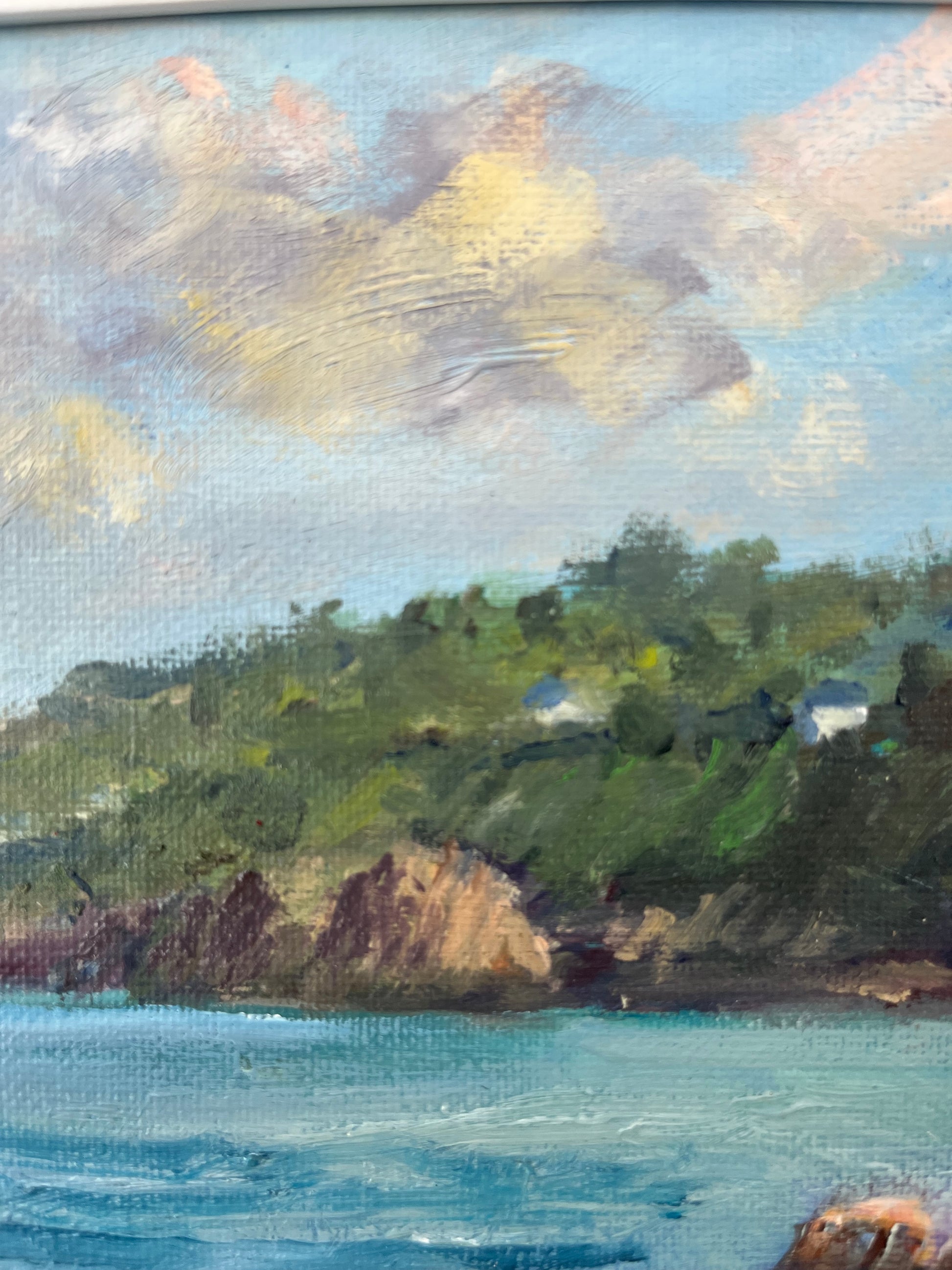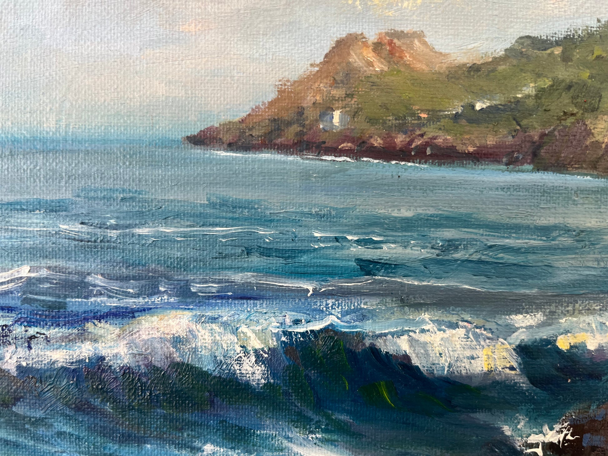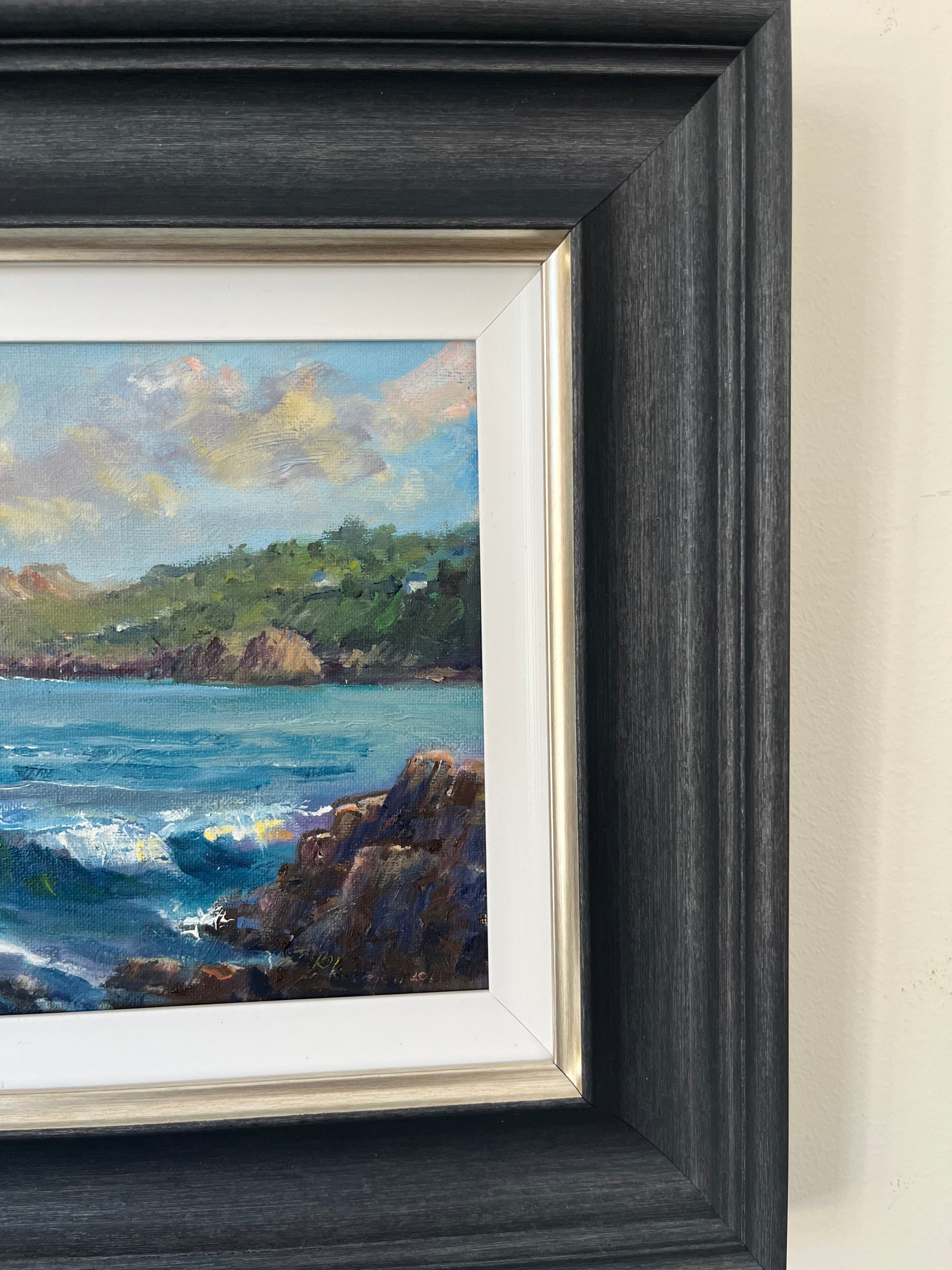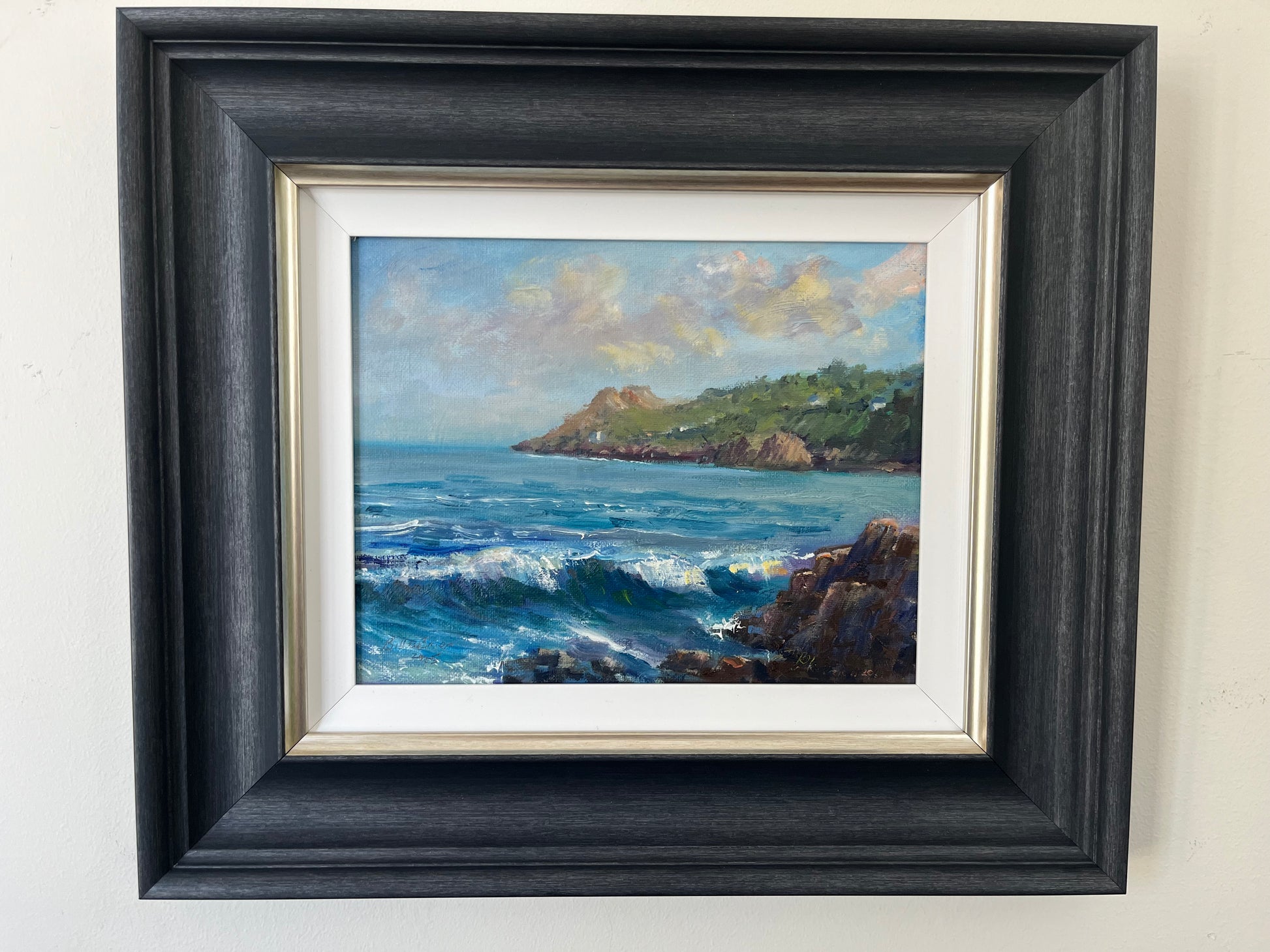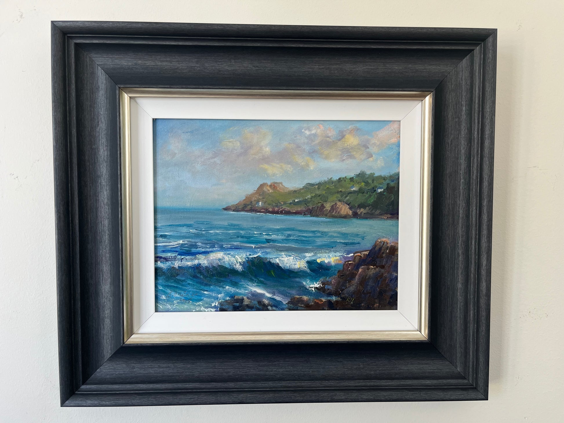 Breakers on Balscadden, Howth is a vibrant oil on board study by contemporary artist Bill O'Brien, capturing the raw, energetic movement of the Irish coast. Utilizing a loose, impressionistic style, O'Brien masterfully renders the crashing surf and dramatic light of Howth’s Balscadden Bay, a location renowned for its rugged beauty and "hidden beach" atmosphere. This signed original is a quintessential example of modern Irish landscape painting, making it a compelling centerpiece for any collection of vintage-style coastal art.